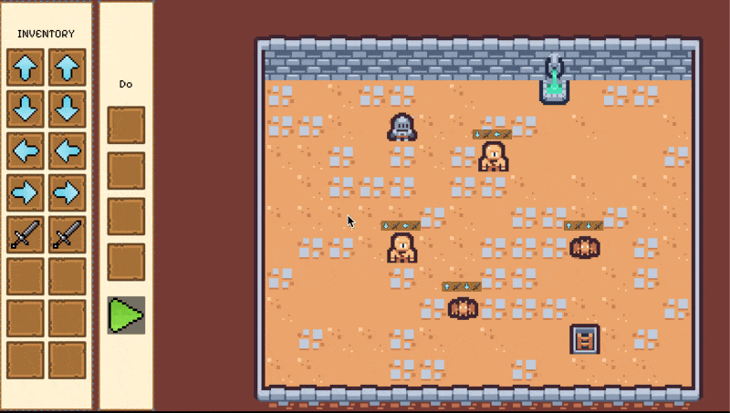 Click and drag cards from your Inventory into your Card Deck, and press the Play button to see your actions play out!